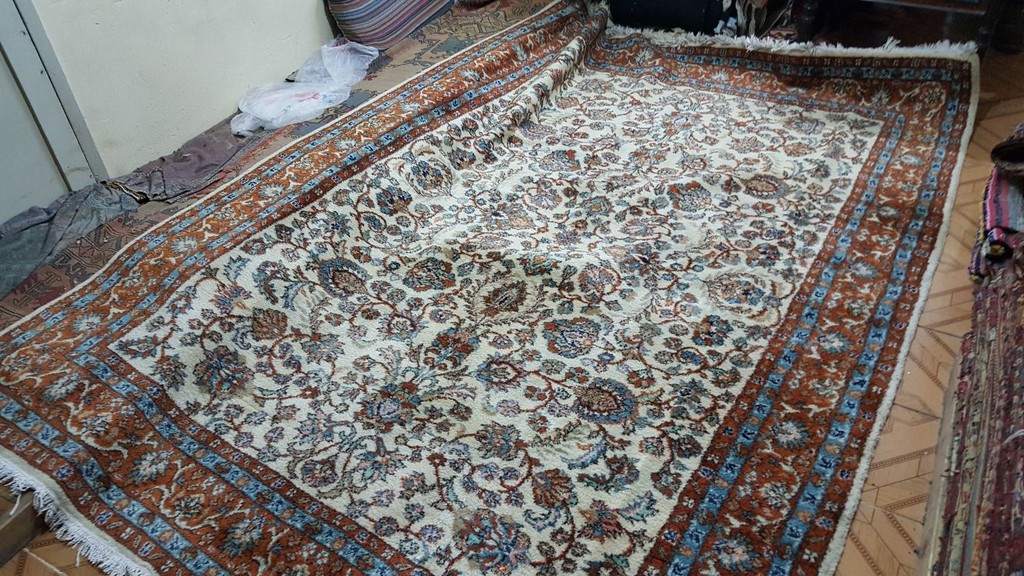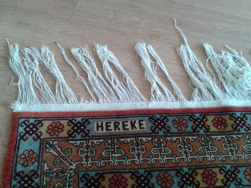 Hereke Halısı mutlaka tek tek yıkanmalıdır. Kir ve tozlarından arındırılmış halı ıslatıldıktan sonra hemen fırçalama işlemine geçilmelidir. Fırçalama işlemi bittikten sonra hızlı bir şekilde gelberi ile durulama yapılmalıdır. Durulama sonrası vakit kaybetmeden halı sıkma işlemine geçilmelidir. Sıkma kazanından alınan halı hemen açılır ve askıya yerleştirilir.